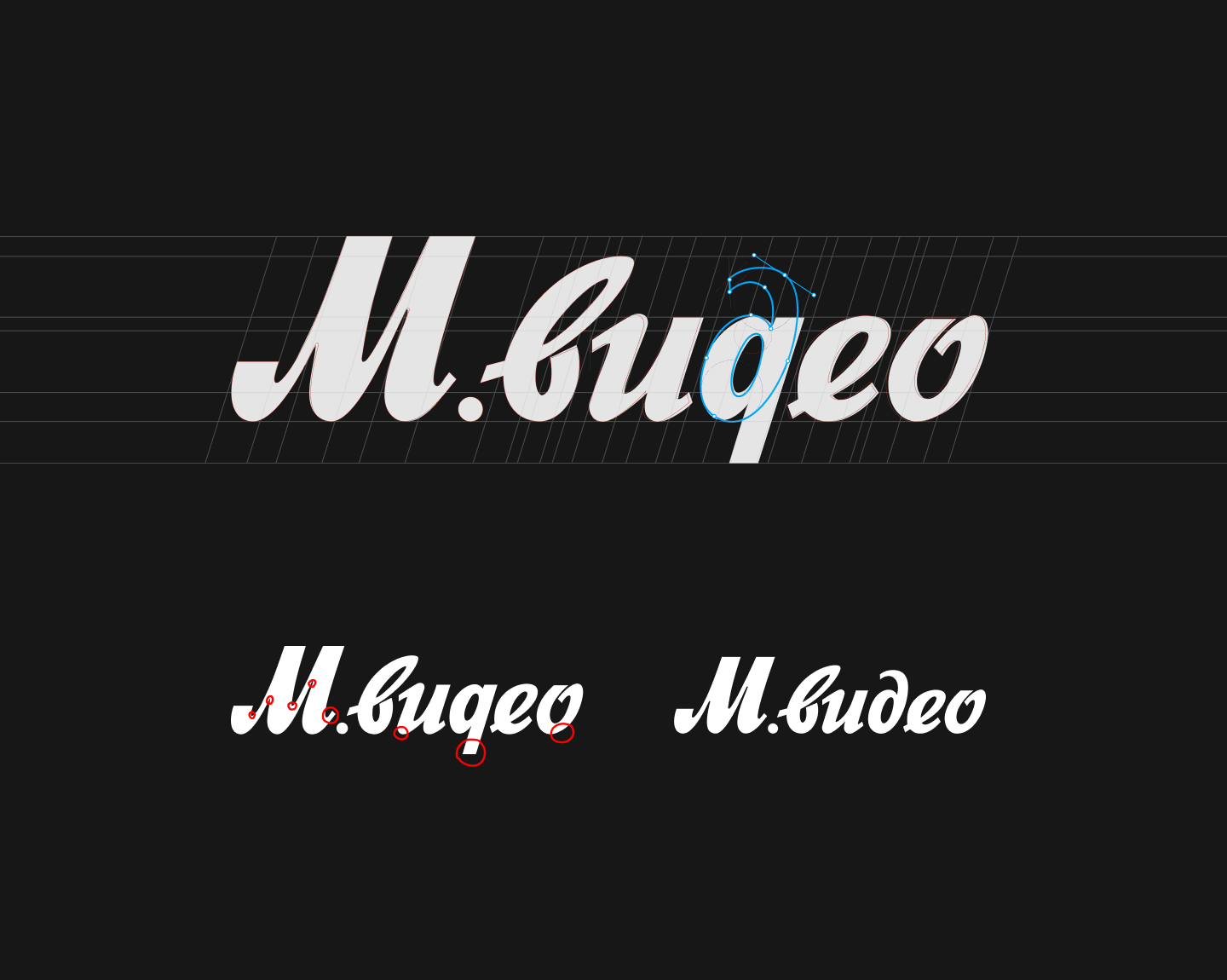 Во время разработки айдентики мне поставлена была задача решить некоторые проблемы, заданные предыдущей версией логотипа. Проблемы заключались в сильно ограничивающей по высоте выносной элемент буквы «д» и её похожесть на английскую букву «q». Также были упрощены его линии.